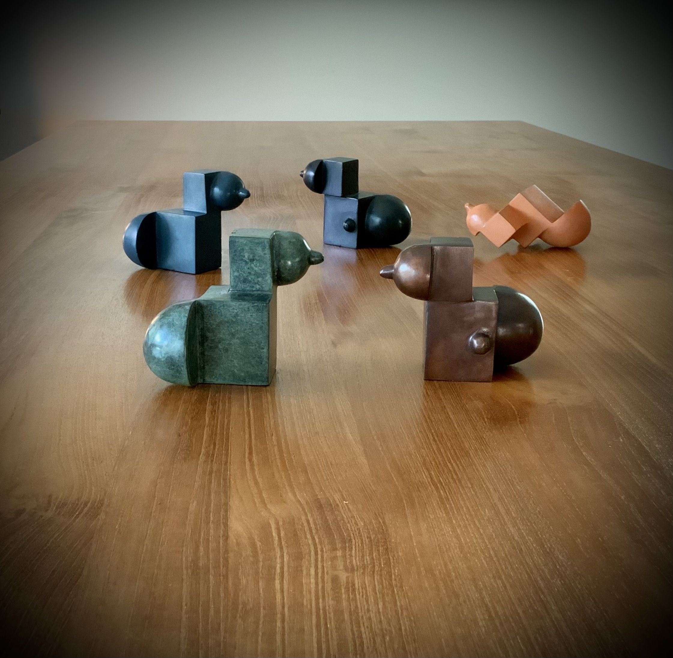 Conception-initie, modulable, Bronze différentes patines, 8x8x11cm_chacune, 2023